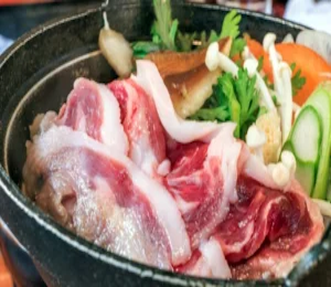 - 俳人蕪村が「静々に五徳にすえにけり薬食」と詠んだぼたん鍋。肉食が禁じられた江戸時代にも「山鯨」と称され、寒さ厳しい冬の季節の栄養補給源として食べられた猪肉。煮込めば煮込むほど柔らかく、体が温まり、牛肉と比べてもビタミンB1が多く、カルシウムは2倍以上。